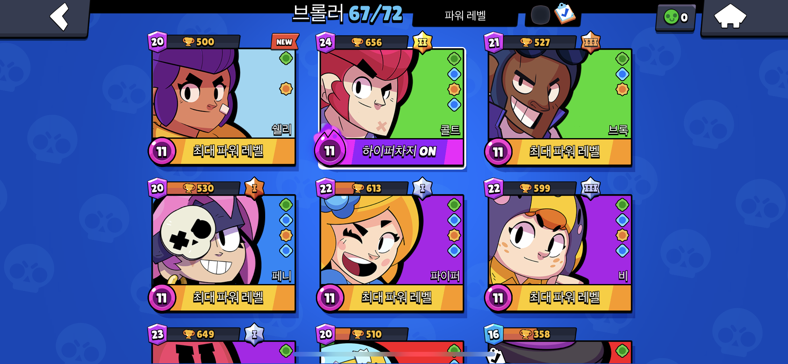 저는 아직까지 67개의 브롤러를 모았습니다.(참고로 저는 무과금 유저입니다.)