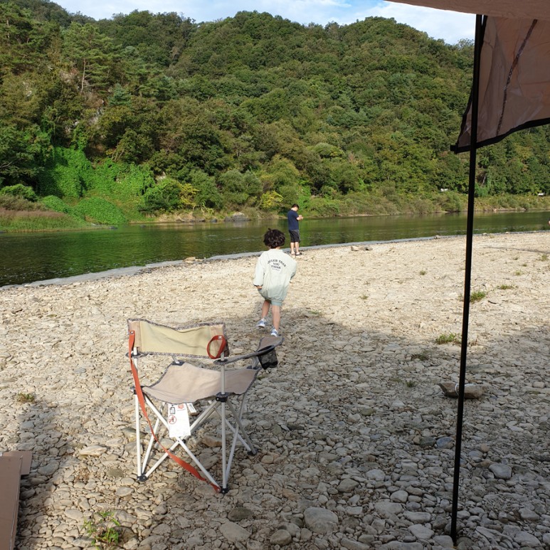 뭐라도 잡아와 보라며 저는 캠핑의자에 앉아서