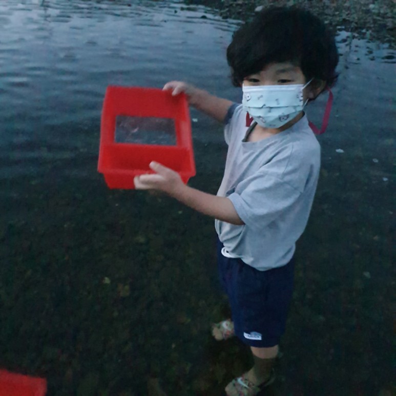 잘했네 잘했어! 아이랑 다슬기를 채집 해야되니까요