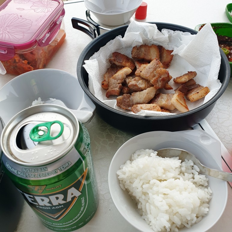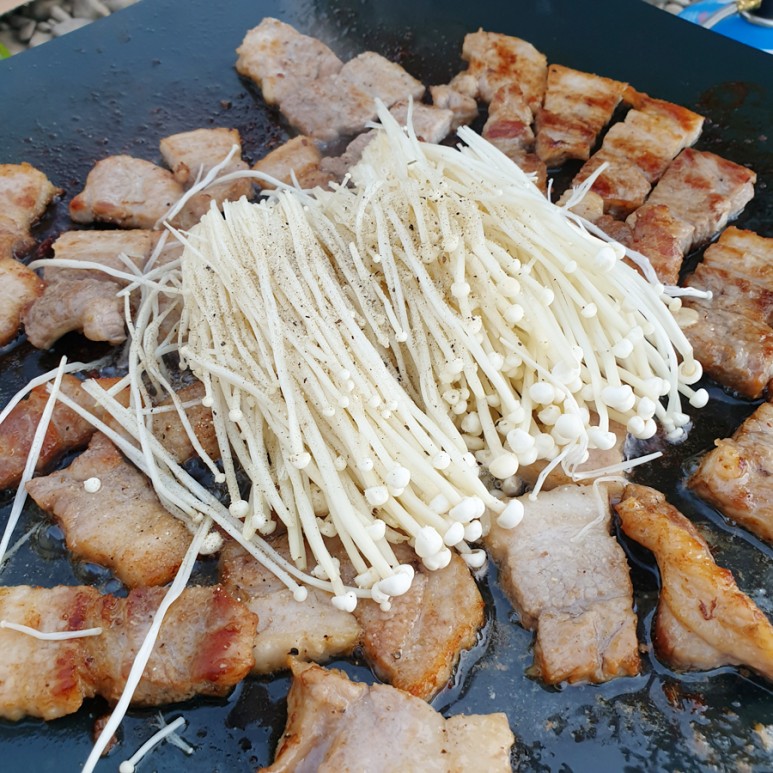 덜 할수있는 쪽으로 삼겹살을 구웠어요