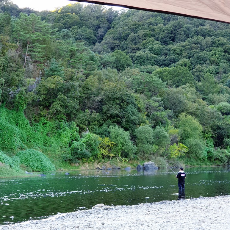 신랑은 홍천강에서 루어 낚시 해본다고 들어갔죠
